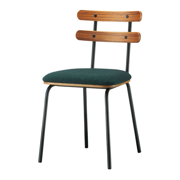 木材の質感を楽しむ、木金混合チェア。豊かな木目の表情とその形状により、賑やかで温かみのある空間を演出します。
