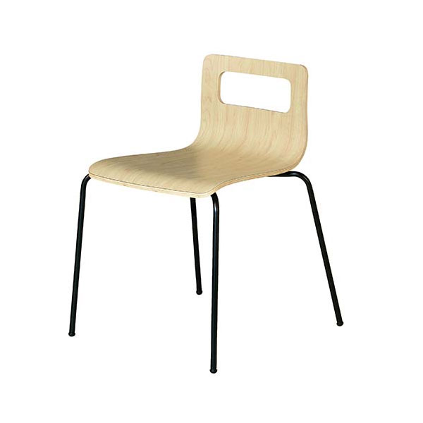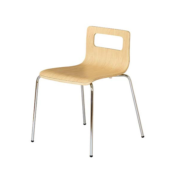 空間を広くするローバックチェア。フードコートやミーティング、食堂などで活躍するスチールチェアです。4脚までスタッキング可能です。
