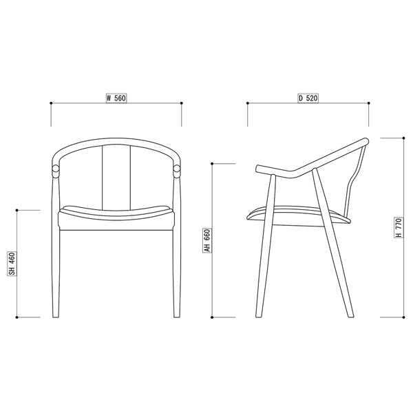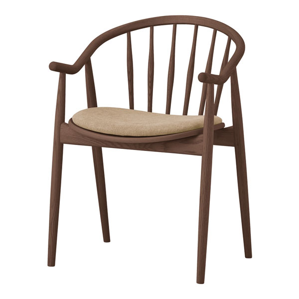 優雅なアームフレームがカフェレストラン空間に寛ぎと癒しを提供します。背もたれデザインはスポークとウッドパネルの2タイプご用意。