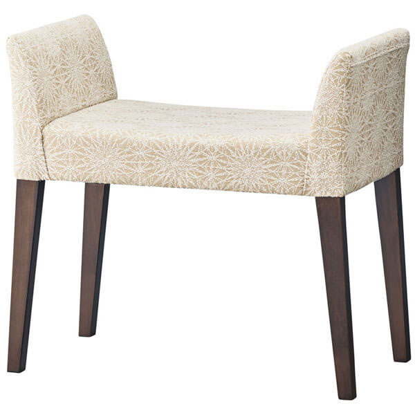 靴を履く際に使用する補助スツール。着席しやすい形状と狭いスペースにも配置可能な設計です。