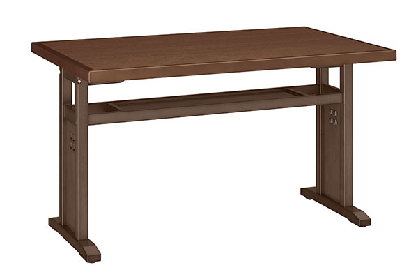 衛生的な抗菌仕様の和風テーブルです。狭い場所でも離着席がしやすい対立脚仕様で、手荷物置きになる棚付きです。エッジは木縁貼り仕上げです。